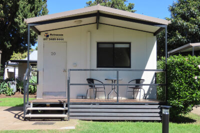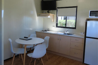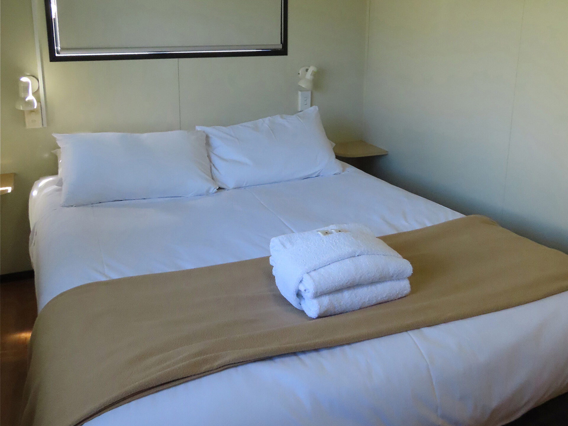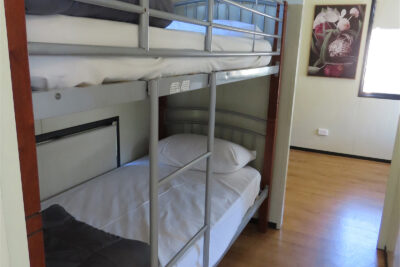 This fully self-contained modern 1 bedroom cabin with cooking facilities offers the room to move and sleeps up to 4 people. The bedroom has a queen bed with ensuite. The bunk beds are separated from the living area by sliding doors. It has split system/reverse cycle air conditioning for your comfort, digital television, outdoor setting and it's set amongst our award-winning gardens.