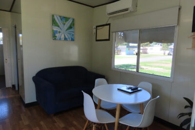 This fully self-contained family villa has an ensuite, main bedroom and a second bedroom with bunk beds separate from the living room, cooking facilities, including digital television and split system/reverse cycle air-conditioning. This lovely villa overlooks the barbecue area. For those of you that love to cook, we have herb gardens for you to use!
