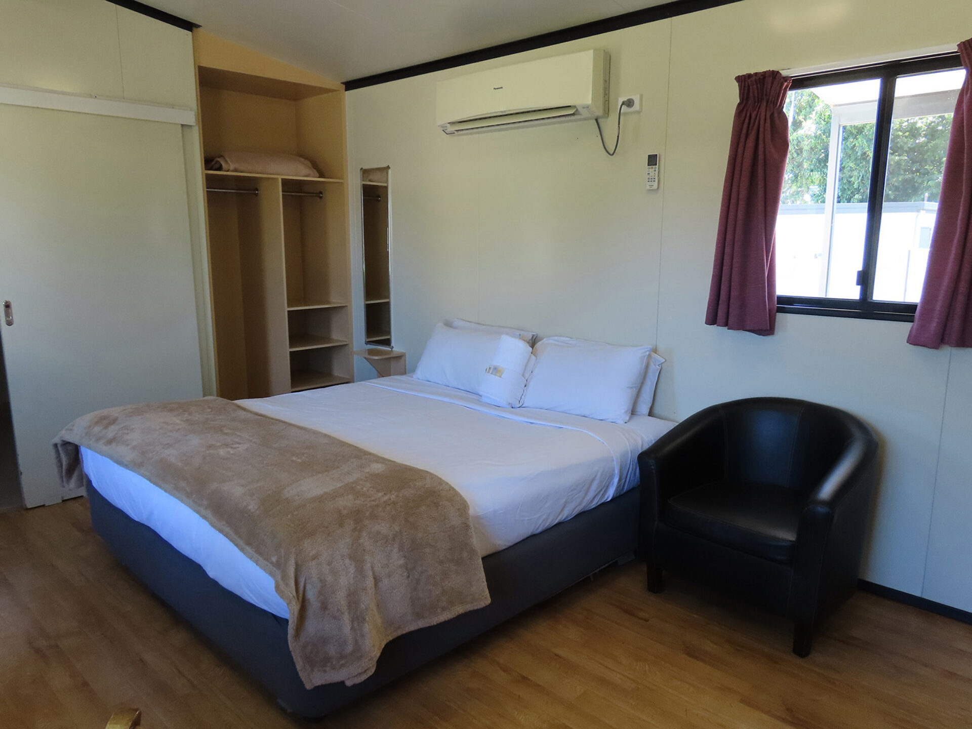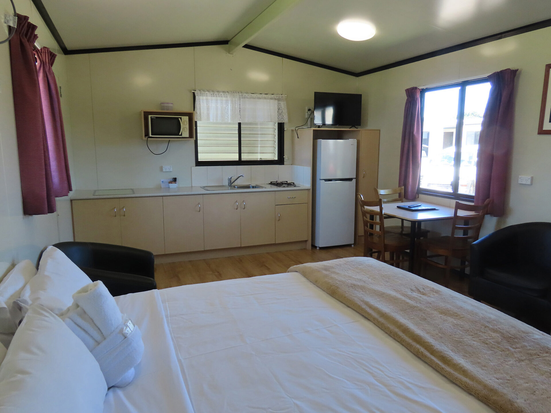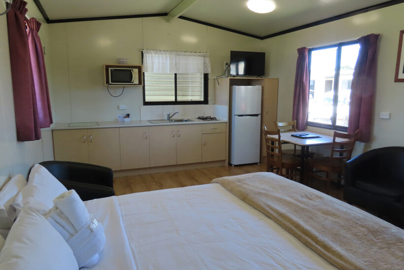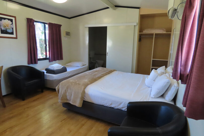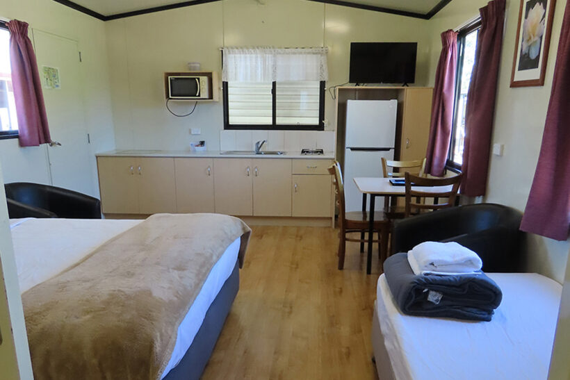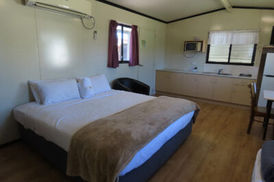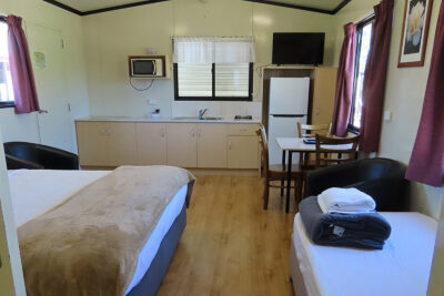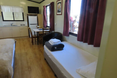 This modern fully self-contained 3 berth cottage is open plan style. It has a massive king-sized bed and one single with cooking facilities, split system/reverse cycle air conditioning and digital TV. | | This cabin is perfect for a small group or family for your enjoyment. |